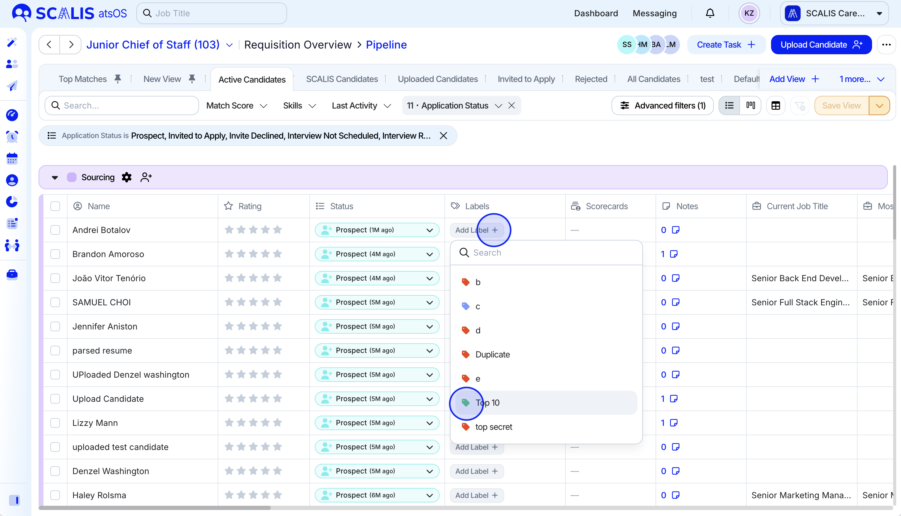 🔥 TIP: Create labels to organize candidates by specific skills, characteristics, or groups.