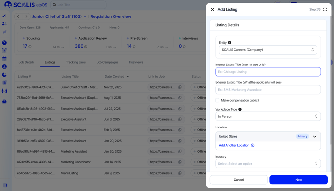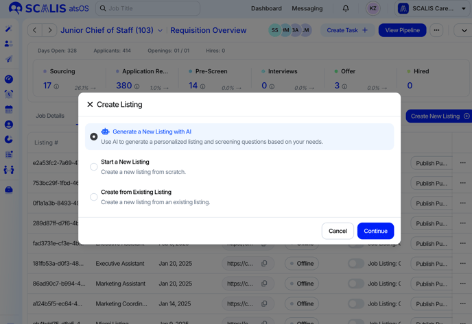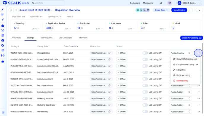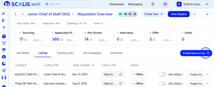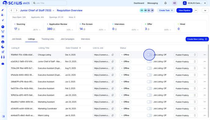 Once you've created your Job Requisition, you’ll need to create one or more Job Listings (if you didn’t already during the initial setup) to start accepting applicants.