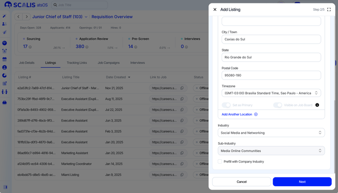 Select your industry & sub-industry. This helps for search and indexing purposes on third party job boards. Click "Next" to continue.
