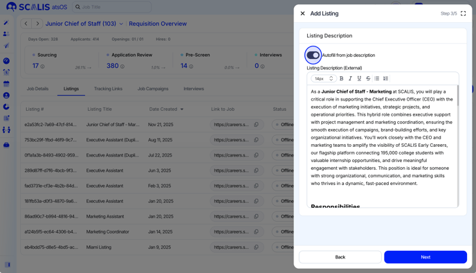 In step 3, you’ll have the option to use your job description to auto-fill the job listing. If you choose to auto-fill, you can review and edit the details before clicking "Next" again.