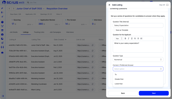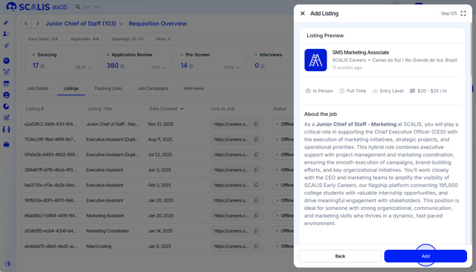 If you want to add additional screening questions, repeat the previous steps. Once done adding your screening questions, click "Next" to preview the job listing. This is what the job listing will look like to applicants. If satisfied, click "Add".