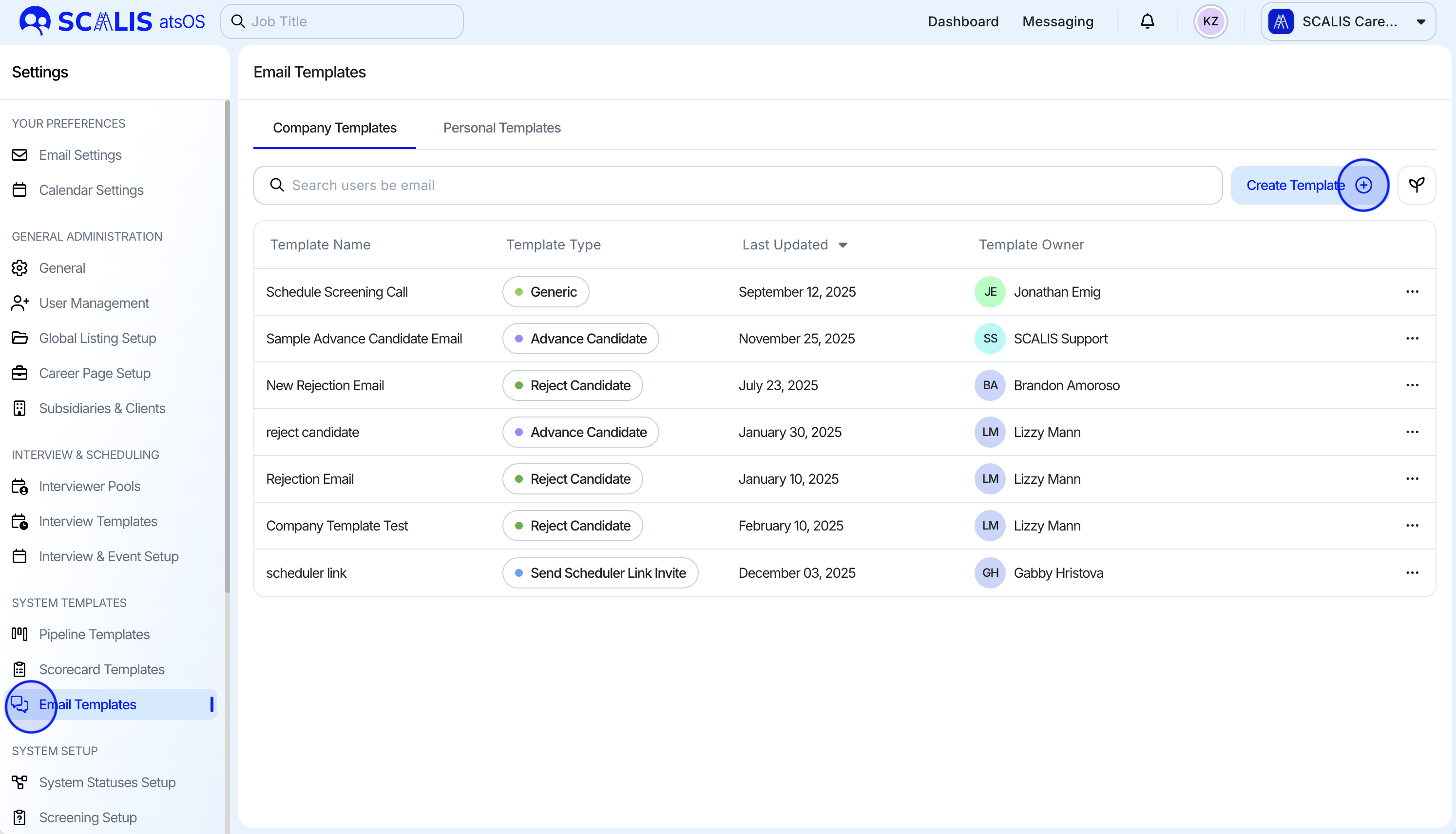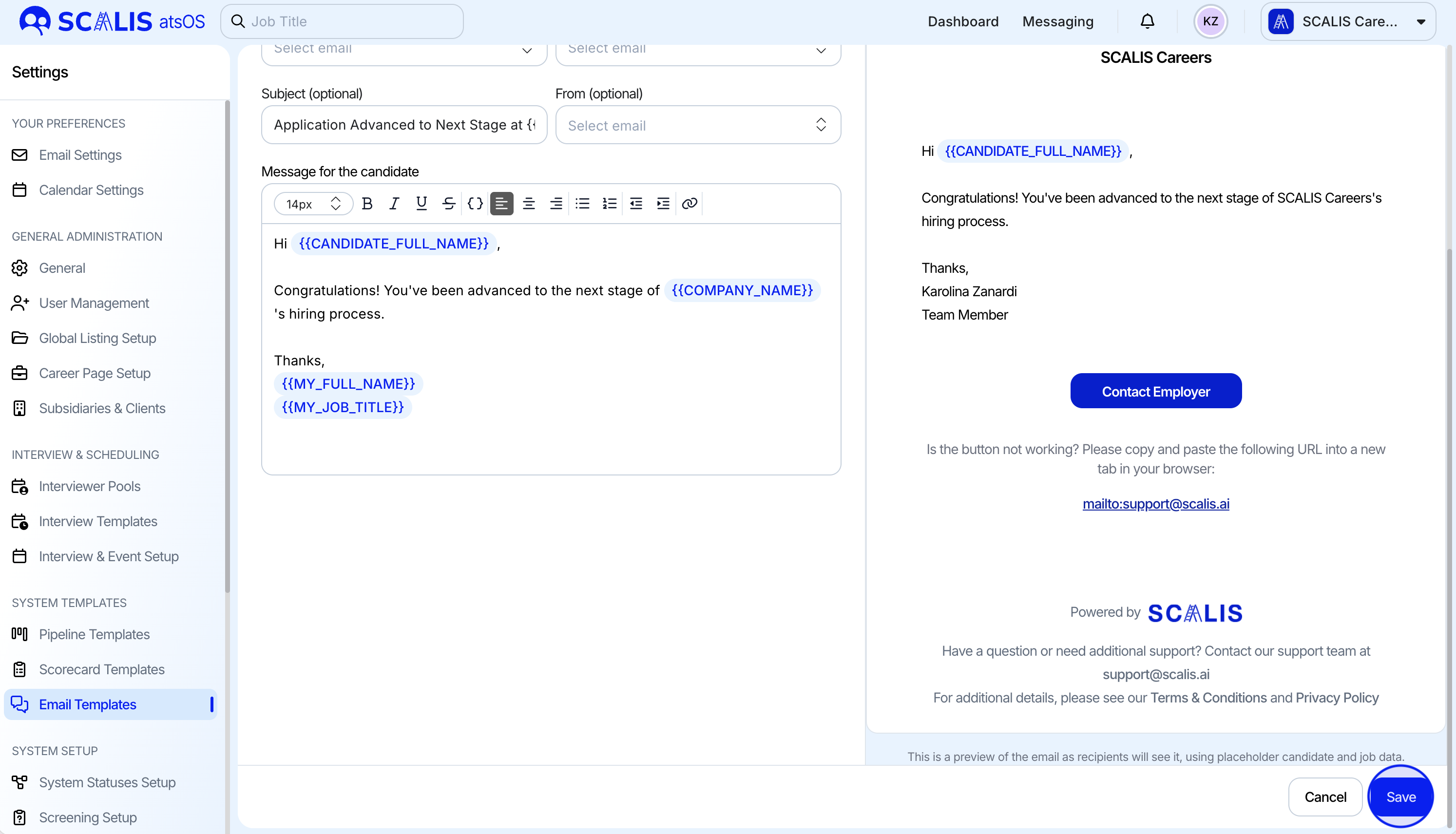 Follow this step-by-step guide on how to create email templates that can be used to communicate with candidates.