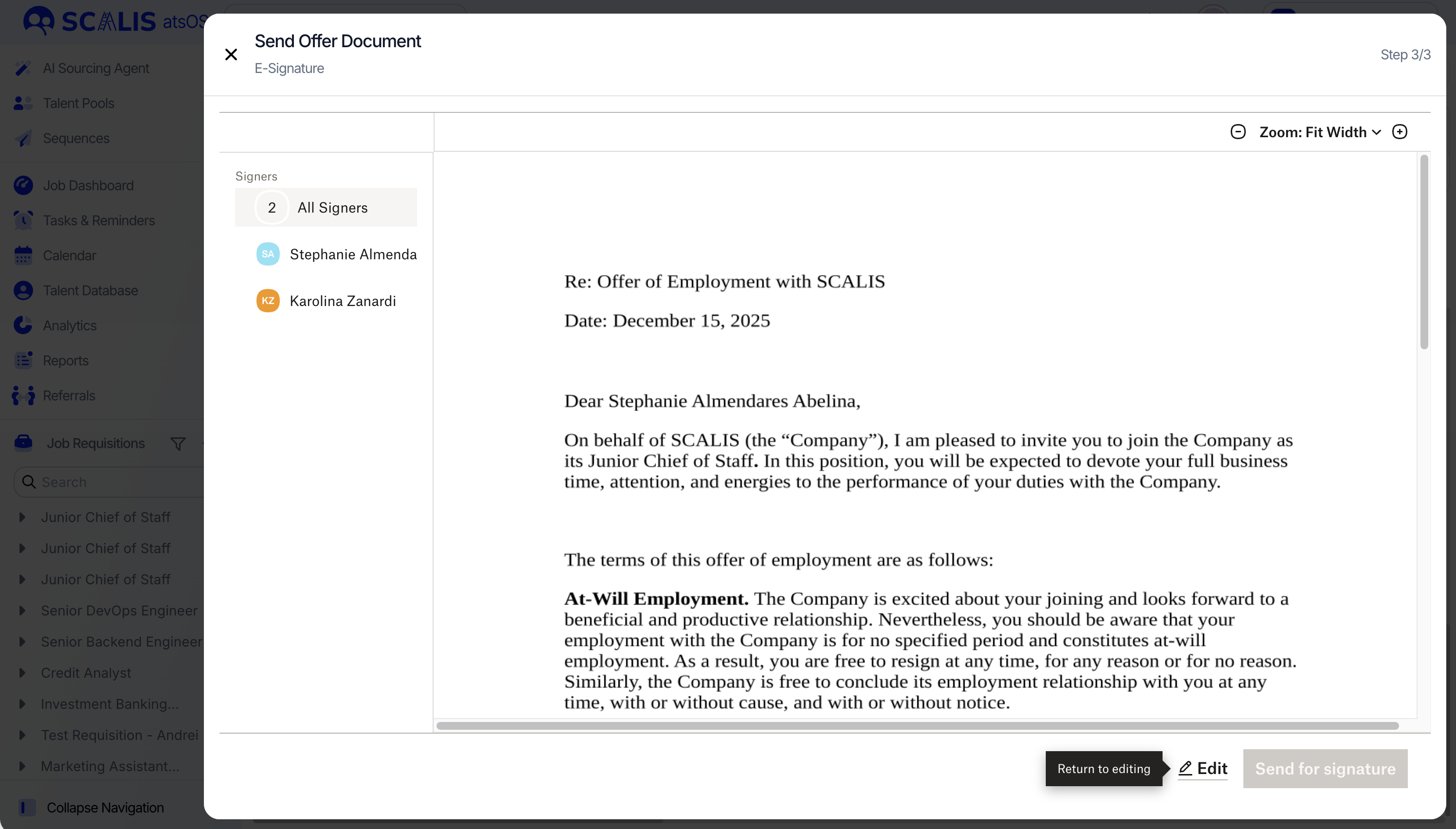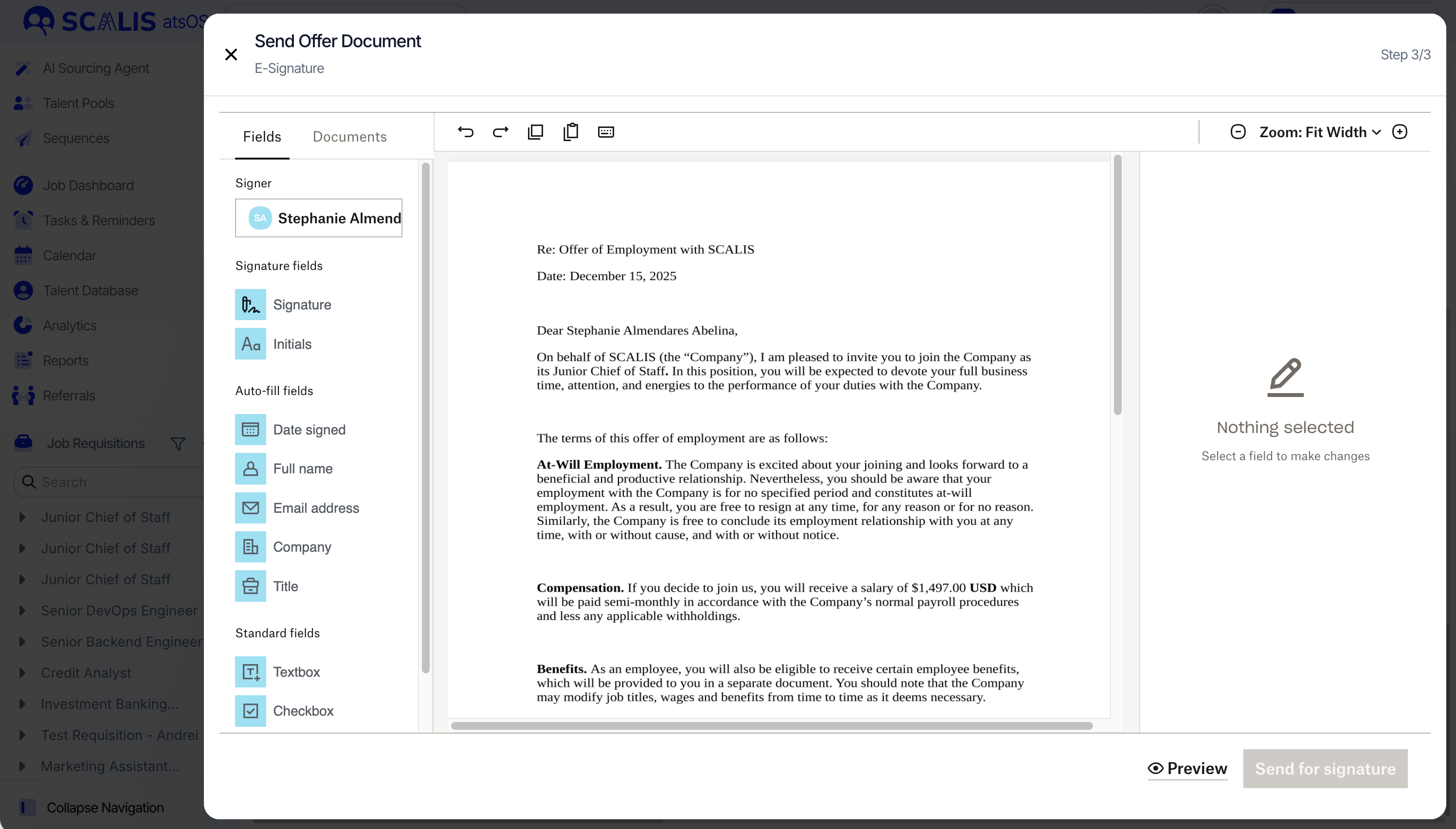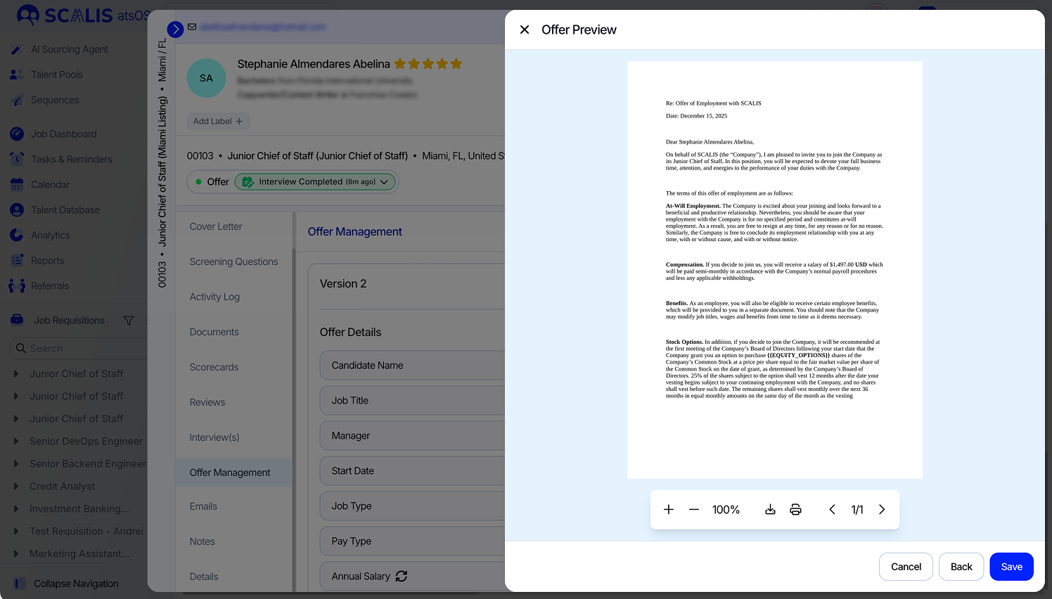 This guide walks you through the complete process of extending an offer - from moving a candidate into the offer stage to sending a signed document via e-signature. We've included advanced configuration options and tips to ensure accuracy.