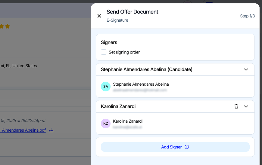 Optionally, add additional internal signers (e.g., Hiring Manager, Legal)