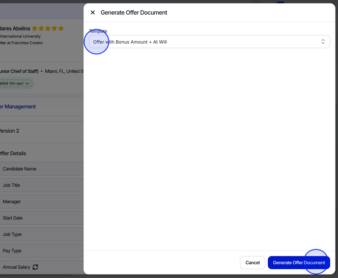 Choose a pre-approved email template (e.g., “Offer Letter - Standard Full Time”)