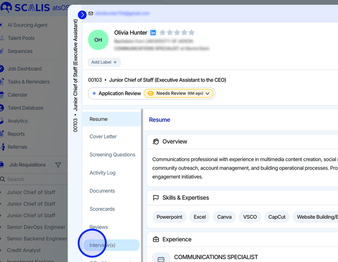 - You can always view scheduled interviews directly from the candidate profile or interview plan.