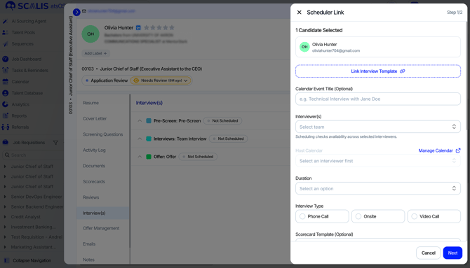 Send Scheduler Link – allows the candidate to pick a time.